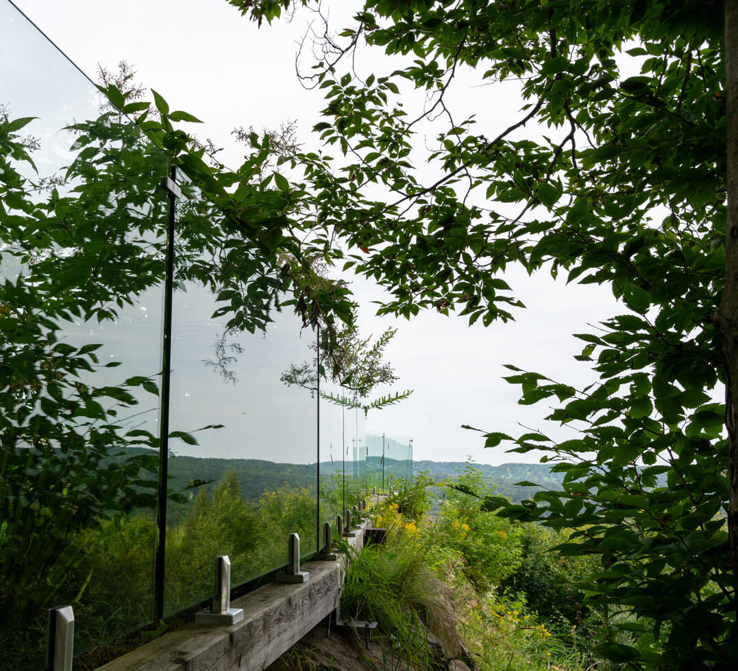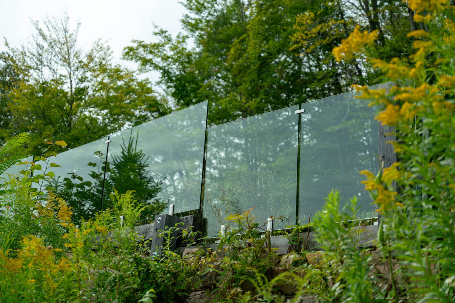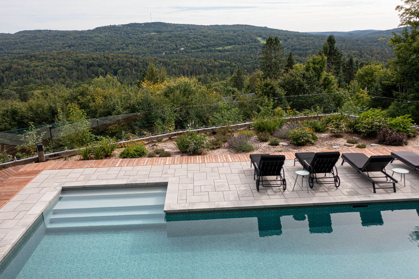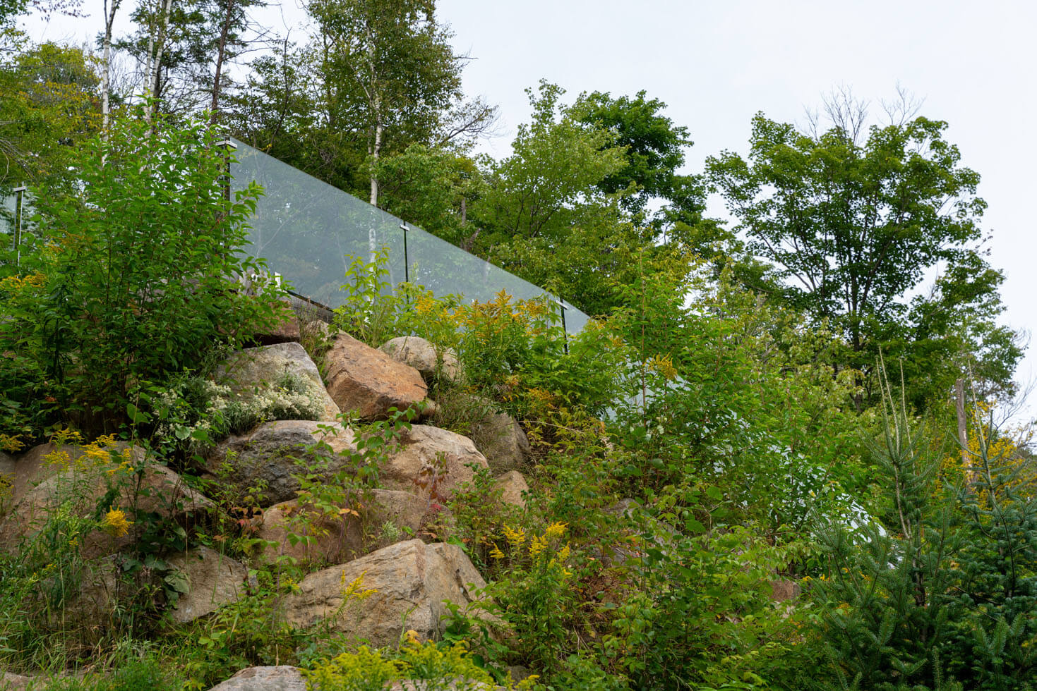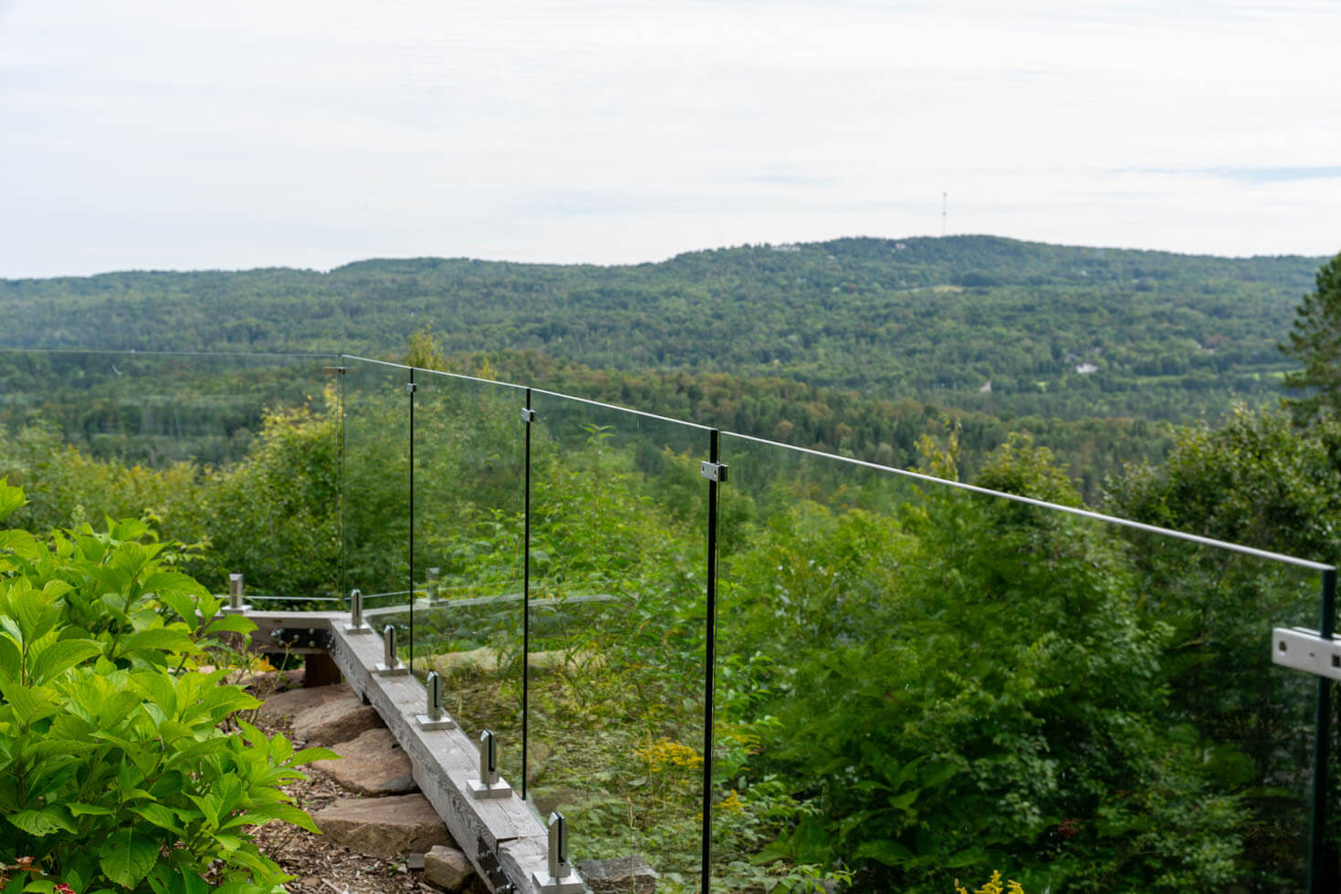 With such a breathtaking view of the Laurentians, the choice of 12mm clear tempered glass railing was the most obvious. This option remains the best for preserving your view of nature and the horizon while securing your space. To maintain a soft, clean, and subtle look, we attached the glass panels with stainless steel spigots.
